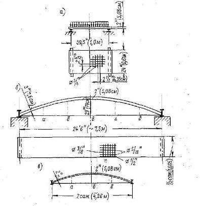 железобетонная плита; б - железобетонный свод пролётом 7,5 м; в - то же, 4,26