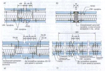 залежності від вимог звуконепроникності і пожежної безпеки. Металеві каркаси