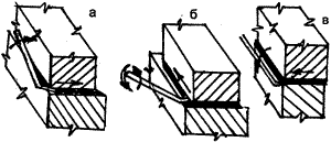 перевіряють правильність закладки кутів. Правило (рис. 14, д) використовується