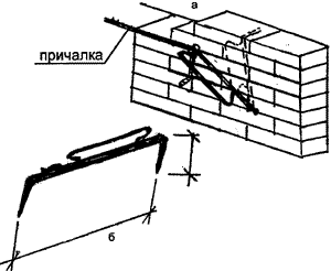 стоїть від стіни з урахуванням підкладки під неї цеглини (рис. 16, а).