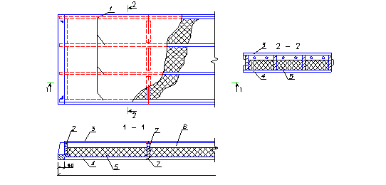 3 - болты; 4 - вклеенные стержни; 5 - эпоксидная шпаклевка