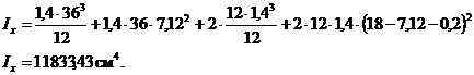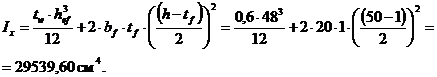 Момент инерции всего сечения: