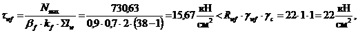 накладку к поясу, рассчитаем на усилие в накладке: