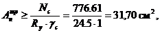 Требуемая площадь стыковых