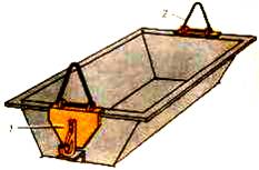 прямокутні опори в нижньому положенні; 2 - робочий настил; 3\ 4 - стропи для