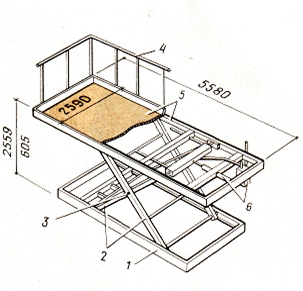 огорожа; 5 - платформа з рабочим настилом; 6 -гидросистема