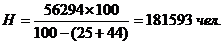 составляет 40-46% (принимаем 44%). Таким образом, общая численность населения