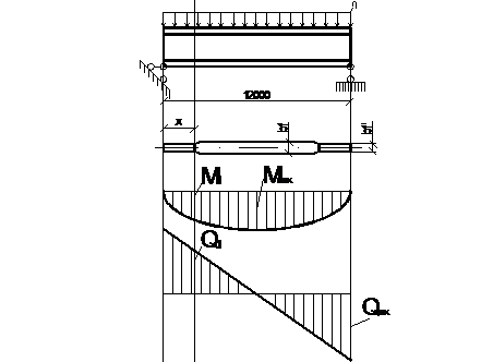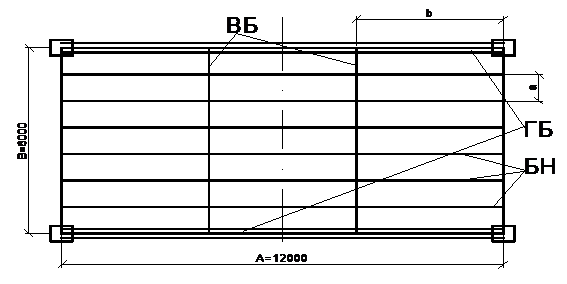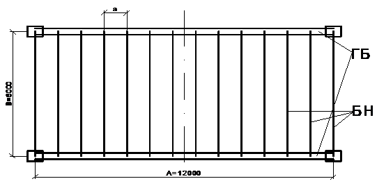 делим пролет ГБ А=12000 мм. на 13 равных частей и получим: