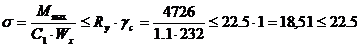 постоянной нагрузки настила, балки настила, вспомогательной балки); γс=1,0
