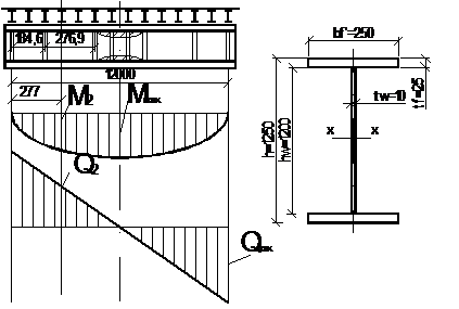 вспомогательные балки из прокатных двутавров, главные балки составного