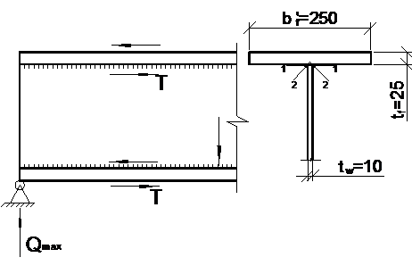 толщина горизонтальных сварных швов принимается конструктивно kf=1см.