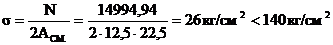 Сечение сжатого раскоса bPX hp = 20,0X12,5 см2,