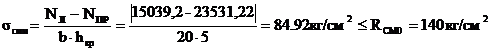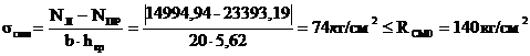 Сечение сжатого раскоса bPX hp = 15X20 см2, усилие