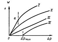 от ΔР линейна при любой разности давлений (линия 3). Во влажных