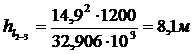 формулу (1.5) и получаем значения потерь напора на всех участках трубопровода :