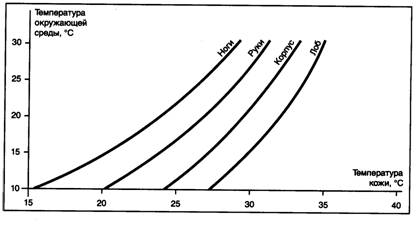 различных участков тела в условиях покоя в зависимости от изменения температуры