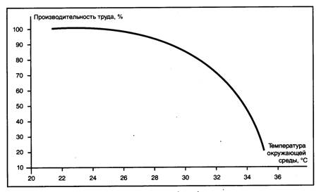 труда от изменения температуры окружающей среды. Как видим из графика, наблюдается