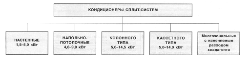 сплит-системы, в которых, по существу, имеют место только охлаждение воздуха (иногда
