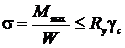 вспомогательных на прочность и проверка их прогибов по формулам: