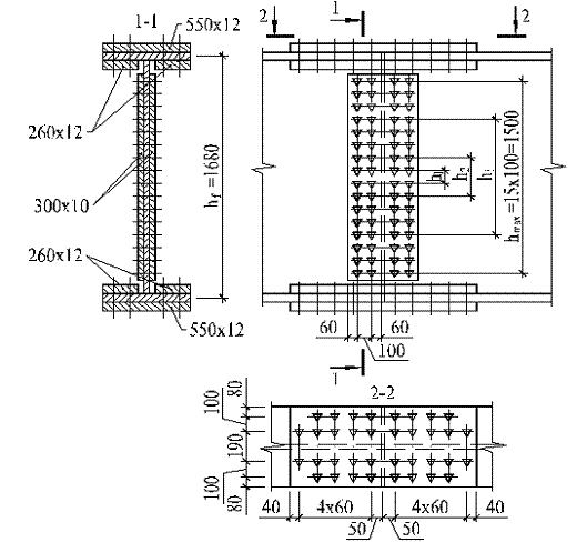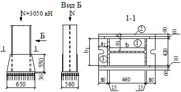 конструктивно минимально допустимый катет шва kf = 7 мм. Стенку колонны у конца ребра укрепляем поперечными ребрами, сечение которых принимаем 100x8 мм.