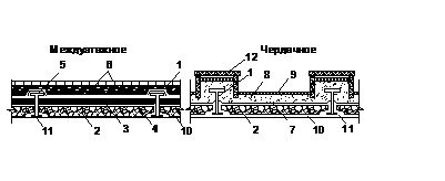 - стяжка (из раствора или сборных плит); 4 - теплоизоляция; 5 - пароизоляция; 6