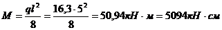 Момент для полосы шириной 1 см в направлении короткой стороны определяем по
