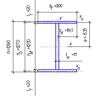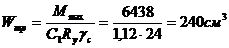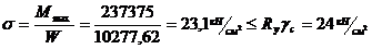 Принимаем двутавр №24: Wx= 289см3 ; Jx=3460 см4 ; Вес = 27,3
