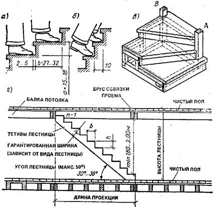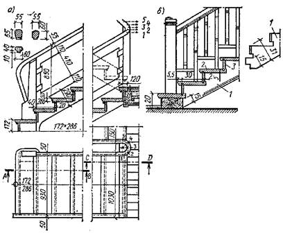 брусках, прибитых к тетивам; обыкновенные лестницы.