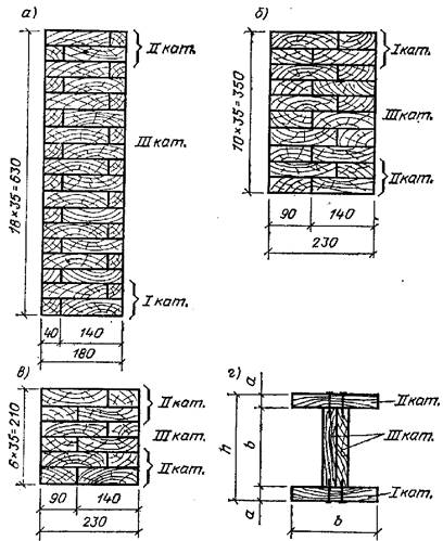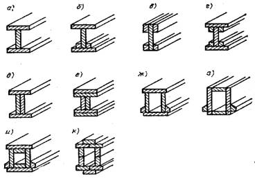 8. Сечения несущих деревянных балок: а…е – двутавровые балки; ж…к – пустотелые