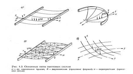конструктивную схему вант, материал покрытия, характер обеспечения жесткости и