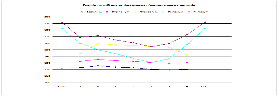 основі виконаного гідравлічного розрахунку мережі та визначених вільних напорів