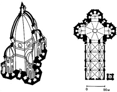 предложения. В 1434 г. восьмигранный стрельчатой формы купол, диаметр которого 42 м, был почти закончен. Его строили без подмостей — рабочие трудились в полости между двумя