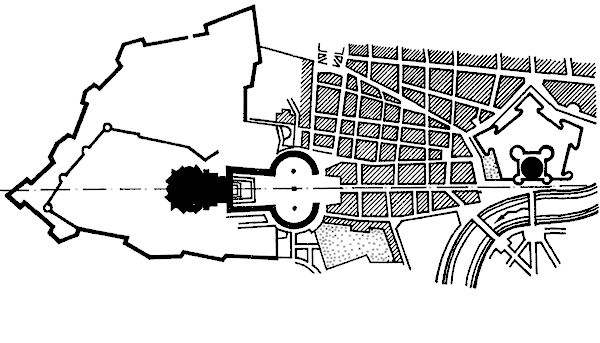 центре города, закладывая тем самым основы дворцовых лучевых композиций. Интерес
