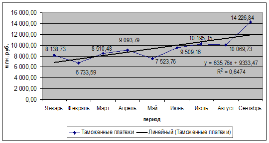 тенденции и построение прогноза сумм таможенных платежей, взимаемых ДВТУ в 2010