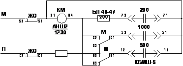 реле Ж, Ж1, Ж2, Ж3 и Ж4. Реле М начинает работать в импульсном режиме, реле КМ