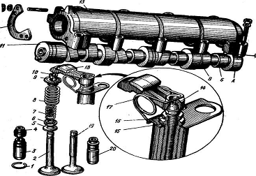 клапан; 17- впускной клапан; 18 - распределительный вал; 19- крышка