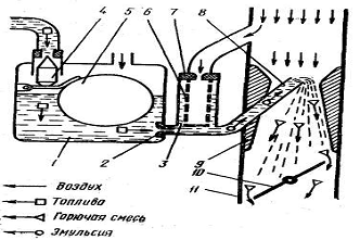 воздухоочиститель; 8 - всасывающий патрубок; 9 - пламегаситель; 10 - шланг; 11