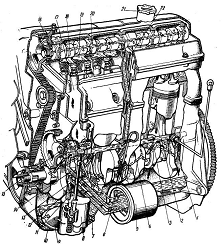 необходимый запас масла. Впереди блока размещены детали привода распределительного