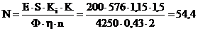по табл. 6 находим значение коэффициента использования светового потока - η=43% (светильник ВЛО).