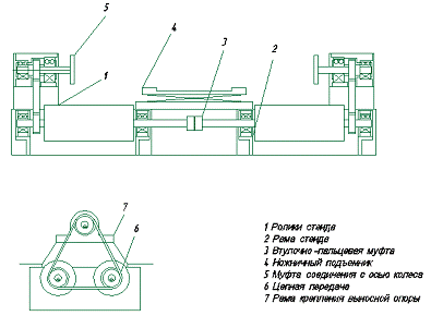 роликами стенда. Это возможно осуществить с помощью дополнительных опор, на