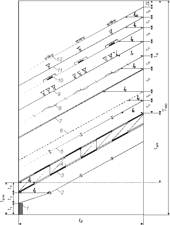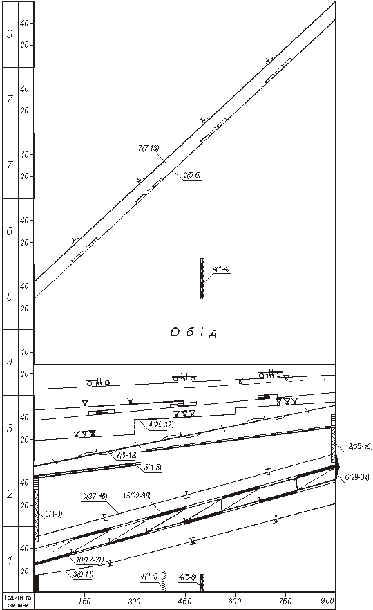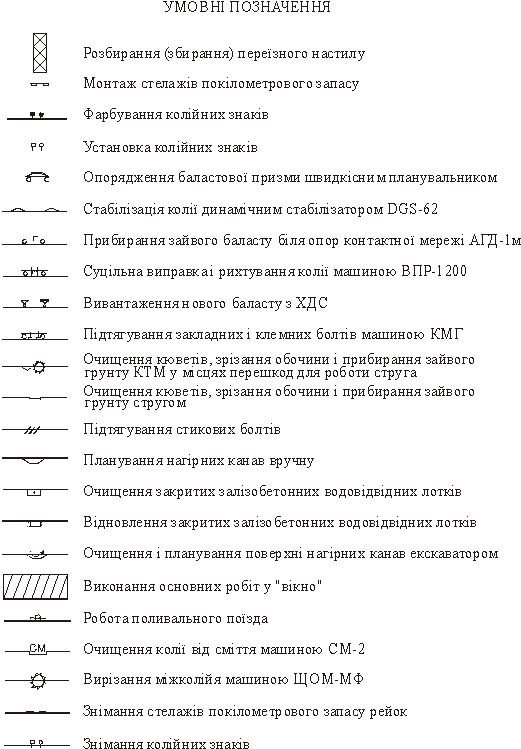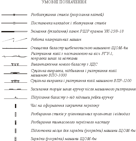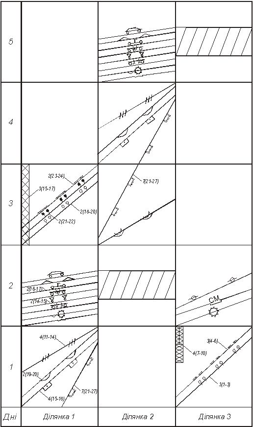 розрахунків на рис.1.6 наведена технологічна схема виконання колійних робіт у