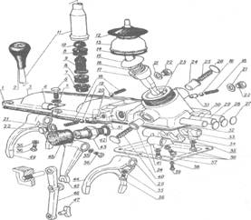 седло пружины; 21 - рычаг переключения передач; 22 - удлинитель; 23 - манжеты;