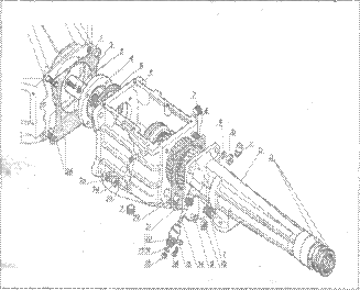 заднем конце, которые входят в паз удлинителя. Ось промежуточной шестерни