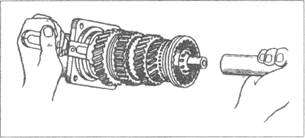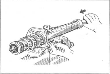 вторичного вала вошел в роликовый подшипник первичного вала, а сухари