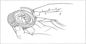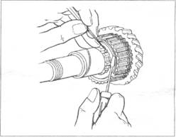кольцом. При этом следить, чтобы сухари синхронизатора вошли в пазы