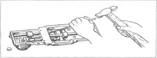 Поместить в картер промежуточную шестерню заднего хода так, чтобы