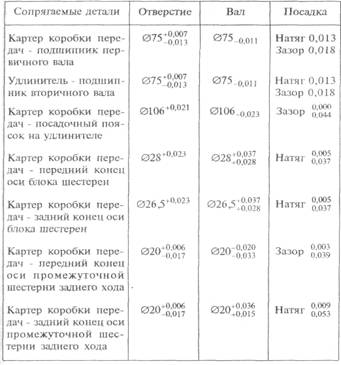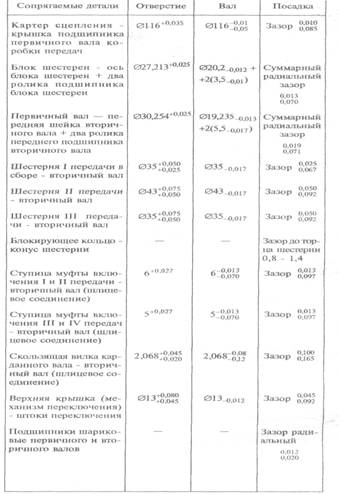 Таблица 10. Размеры сопрягаемых деталей коробки передач, мм