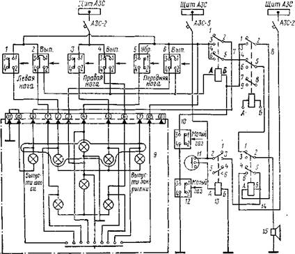 сигнализации шасси; 8 — реле сигнализации закрылков; 9 —