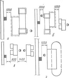 машиной и выварочной ванной; в — расстояния между колонной и выварочной ванной