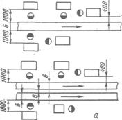 рольганг или напольный конвейер; б— подвесной конвейер или монорельс с